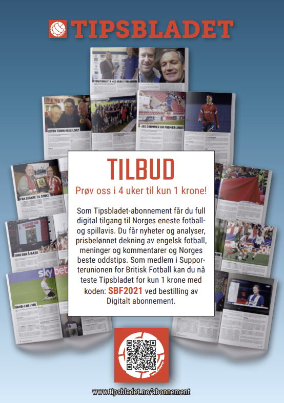 Tips er ute i digital form og frister med et prøve abo til kun kr. 1. Ønsker du litt spesialer om engelsk fotball, tipping osv, benytt deg av tilbudet. Du følger bare denne lenken, så har du muligheten nå og noen uker fremover.
